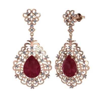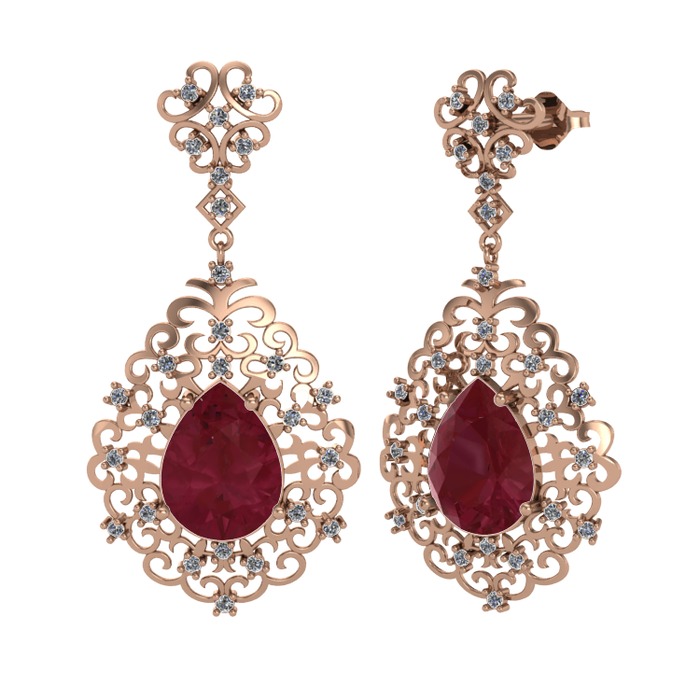 Kök yakut ve pırlanta 18 ayar rose altın küpe (1.04 karat)