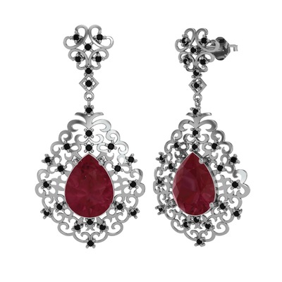 Kök yakut ve siyah zirkon 14 ayar beyaz altın küpe
