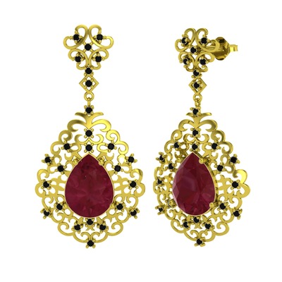 Kök yakut ve siyah zirkon 8 ayar altın küpe