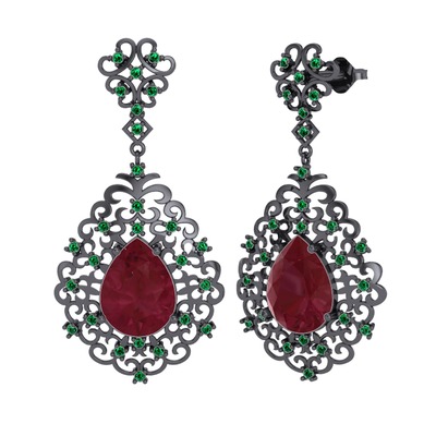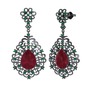 Kök yakut ve yeşil kuvars 925 ayar siyah rodyum kaplama gümüş küpe