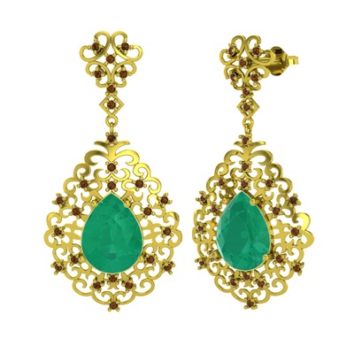 Kök zümrüt ve dumanlı kuvars 925 ayar altın kaplama gümüş küpe