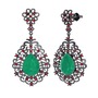 Kök zümrüt ve garnet 925 ayar siyah rodyum kaplama gümüş küpe