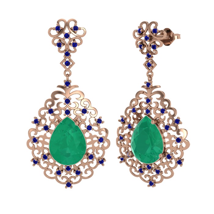 Kök zümrüt ve lab safir 14 ayar rose altın küpe