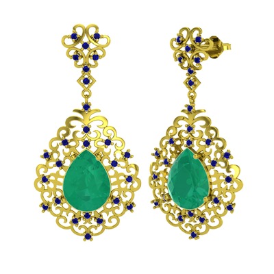 Kök zümrüt ve lab safir 18 ayar altın küpe