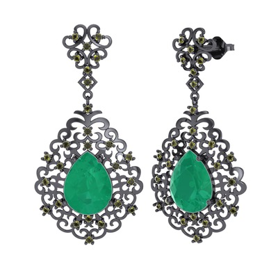 Kök zümrüt ve peridot 925 ayar siyah rodyum kaplama gümüş küpe