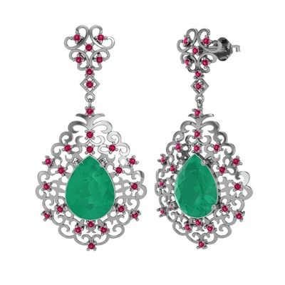 Kök zümrüt ve rodolit garnet 925 ayar gümüş küpe