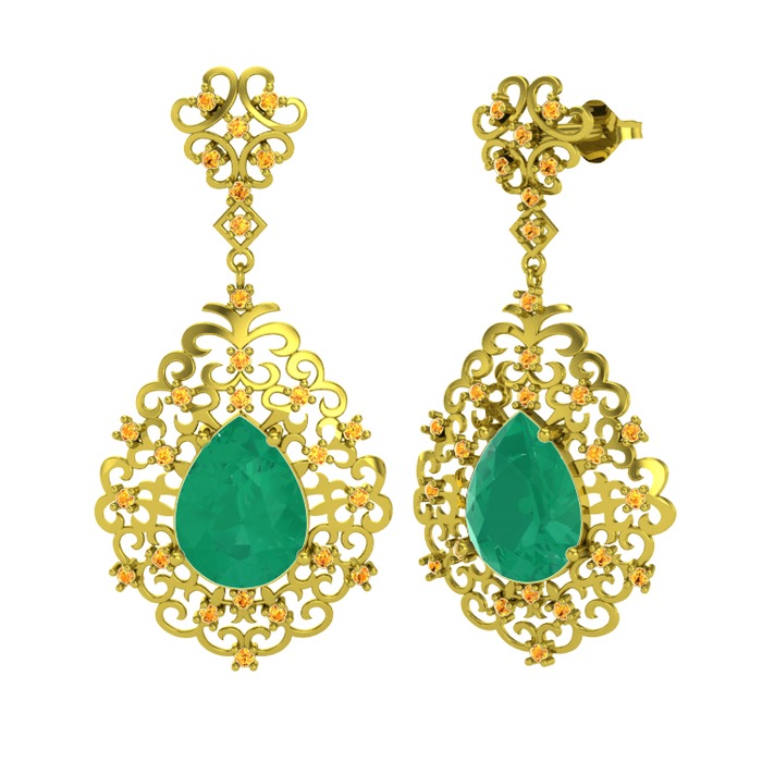 Kök zümrüt ve sitrin 925 ayar altın kaplama gümüş küpe