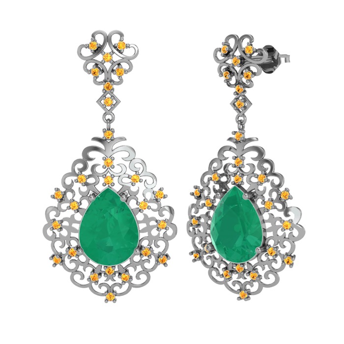 Kök zümrüt ve sitrin 925 ayar gümüş küpe