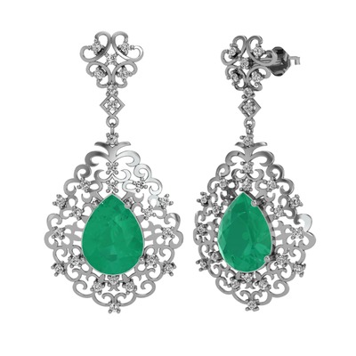Kök zümrüt ve swarovski 8 ayar beyaz altın küpe