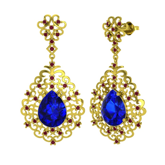 Lab safir ve kök yakut 8 ayar altın küpe