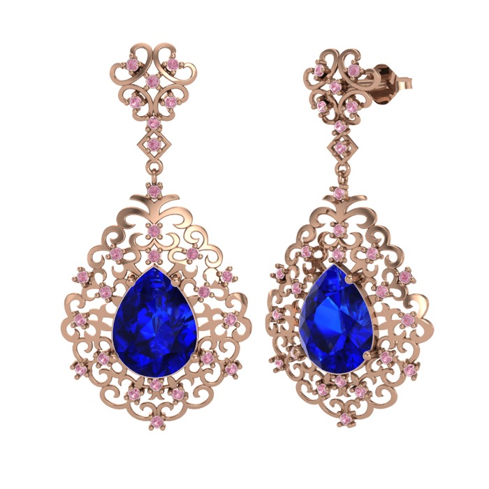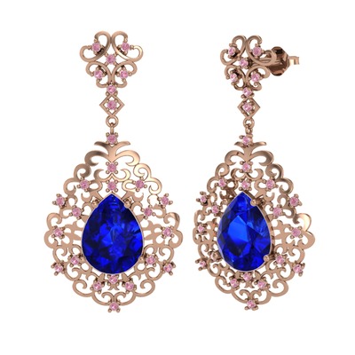 Lab safir ve pembe kuvars 8 ayar rose altın küpe
