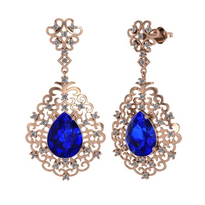 Lab safir ve pırlanta 18 ayar rose altın küpe (1.04 karat)
