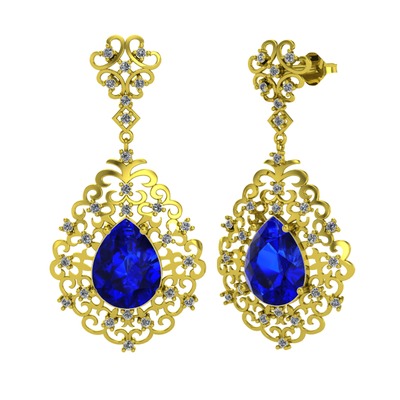 Lab safir ve pırlanta 925 ayar altın kaplama gümüş küpe (1.04 karat)