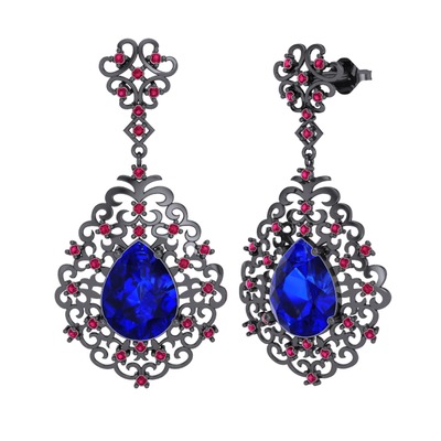 Lab safir ve rodolit garnet 925 ayar siyah rodyum kaplama gümüş küpe