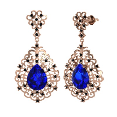 Lab safir ve siyah zirkon 8 ayar rose altın küpe