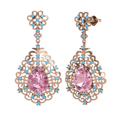 Pembe kuvars ve akuamarin 14 ayar rose altın küpe