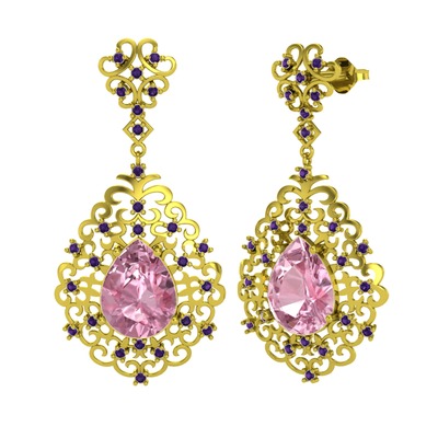 Pembe kuvars ve ametist 18 ayar altın küpe