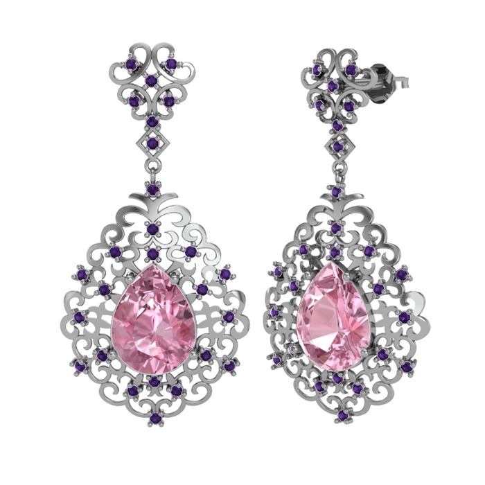 Pembe kuvars ve ametist 925 ayar gümüş küpe