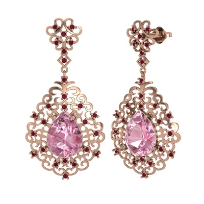 Pembe kuvars ve kök yakut 925 ayar rose altın kaplama gümüş küpe