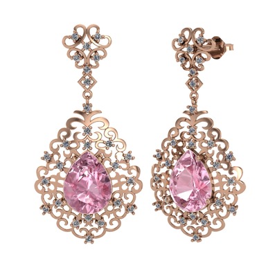 Pembe kuvars ve pırlanta 18 ayar rose altın küpe (1.04 karat)