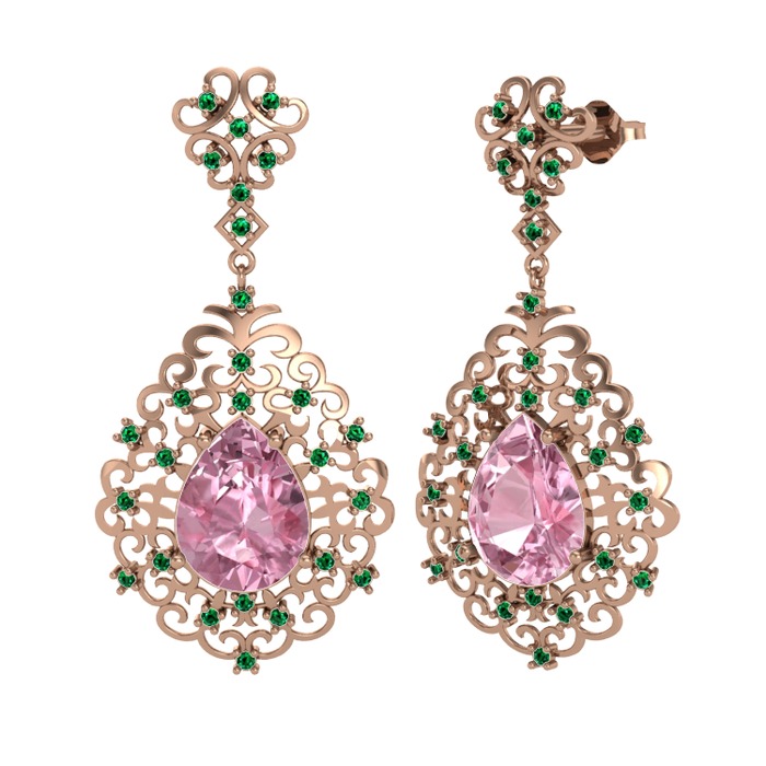 Pembe kuvars ve yeşil kuvars 18 ayar rose altın küpe