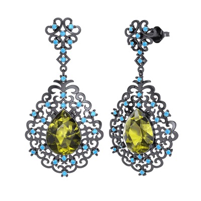Peridot ve akuamarin 925 ayar siyah rodyum kaplama gümüş küpe