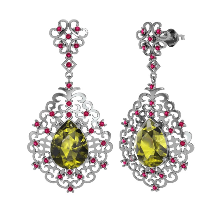 Peridot ve rodolit garnet 8 ayar beyaz altın küpe