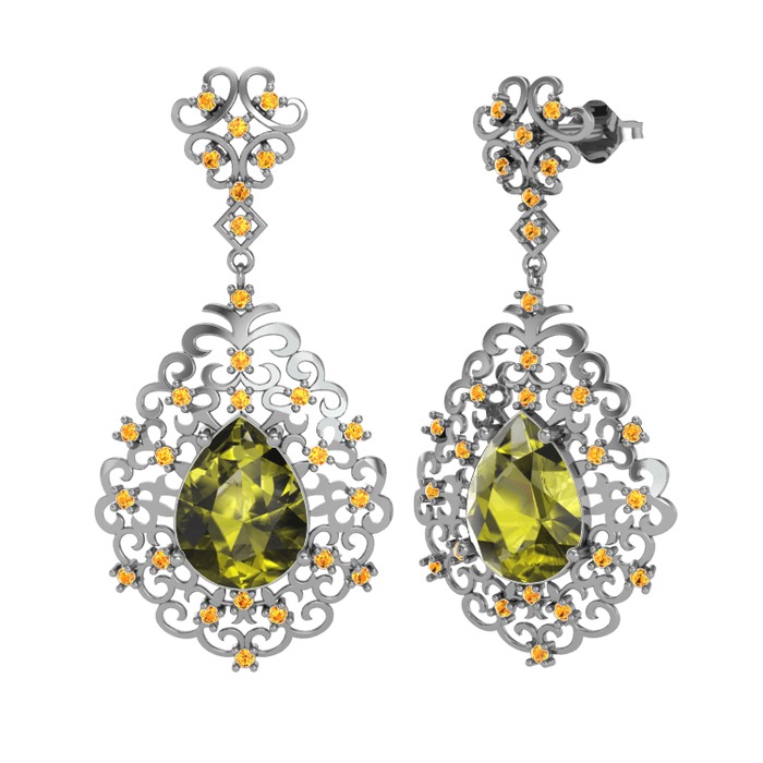 Peridot ve sitrin 925 ayar gümüş küpe