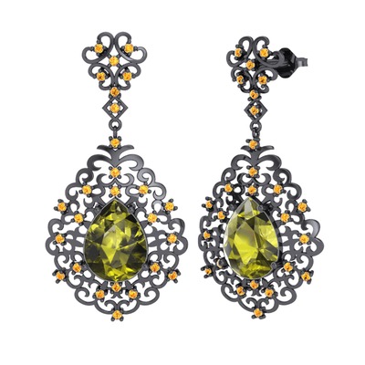 Peridot ve sitrin 925 ayar siyah rodyum kaplama gümüş küpe
