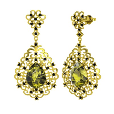 Peridot ve siyah zirkon 8 ayar altın küpe