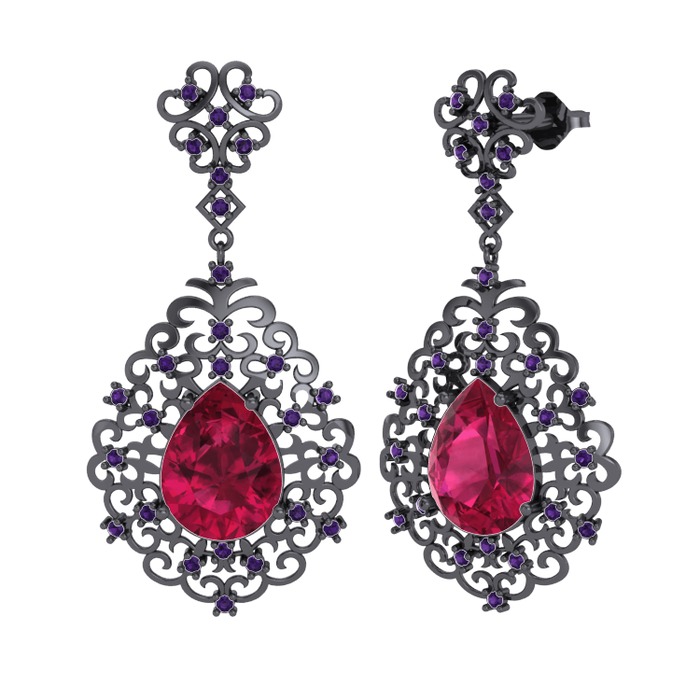 Rodolit garnet ve ametist 925 ayar siyah rodyum kaplama gümüş küpe