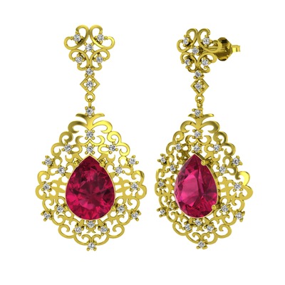Rodolit garnet ve beyaz zirkon 18 ayar altın küpe