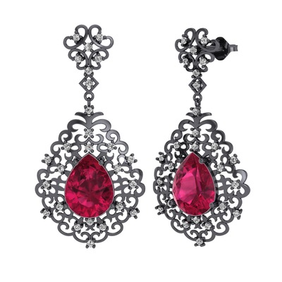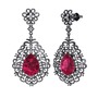 Rodolit garnet ve beyaz zirkon 925 ayar siyah rodyum kaplama gümüş küpe