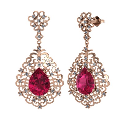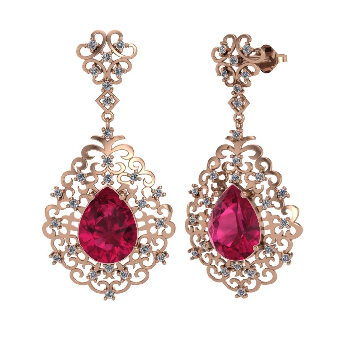 Rodolit garnet ve pırlanta 14 ayar rose altın küpe (1.04 karat)