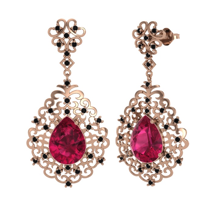 Rodolit garnet ve siyah zirkon 18 ayar rose altın küpe