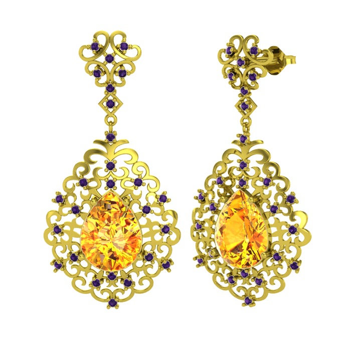 Sitrin ve ametist 925 ayar altın kaplama gümüş küpe