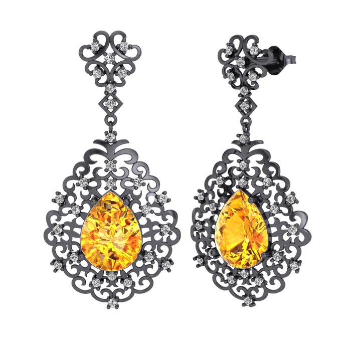 Sitrin ve beyaz zirkon 925 ayar siyah rodyum kaplama gümüş küpe