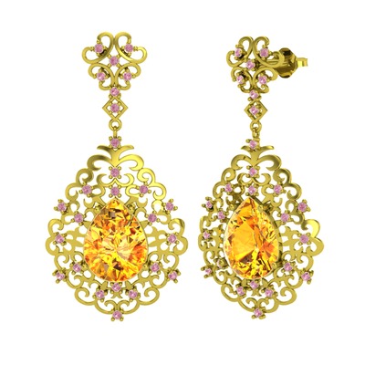 Sitrin ve pembe kuvars 18 ayar altın küpe