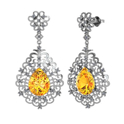 Sitrin ve pırlanta 925 ayar gümüş küpe (1.04 karat)