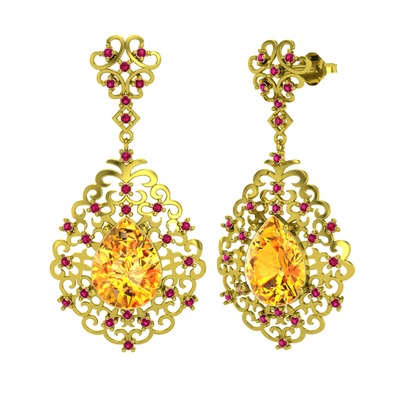Sitrin ve rodolit garnet 18 ayar altın küpe
