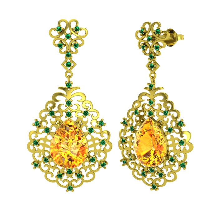 Sitrin ve yeşil kuvars 925 ayar altın kaplama gümüş küpe