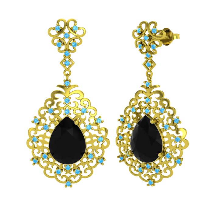 Siyah zirkon ve akuamarin 18 ayar altın küpe