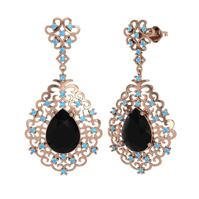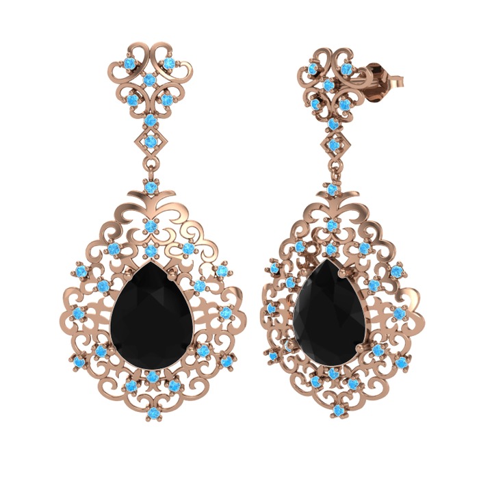 Siyah zirkon ve akuamarin 18 ayar rose altın küpe