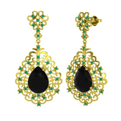 Siyah zirkon ve kök zümrüt 8 ayar altın küpe