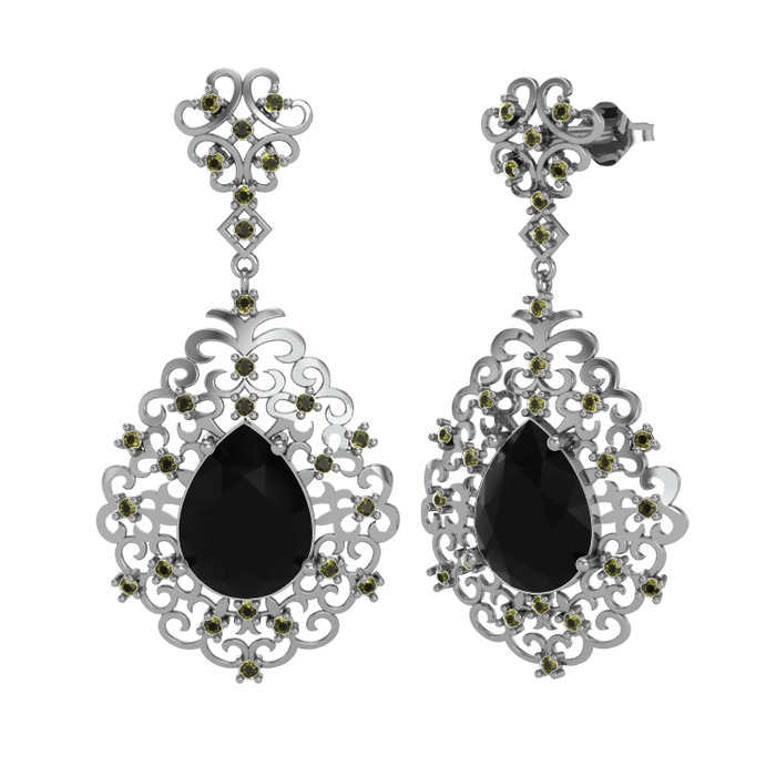 Siyah zirkon ve peridot 18 ayar beyaz altın küpe