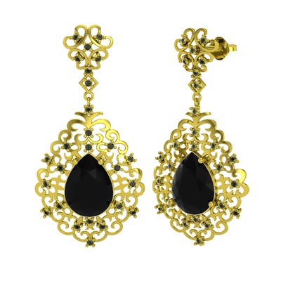 Siyah zirkon ve peridot 8 ayar altın küpe