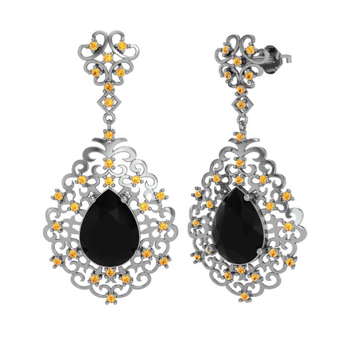 Siyah zirkon ve sitrin 18 ayar beyaz altın küpe