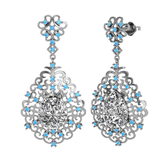 Swarovski ve akuamarin 8 ayar beyaz altın küpe