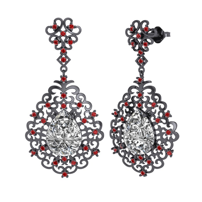 Swarovski ve garnet 925 ayar siyah rodyum kaplama gümüş küpe