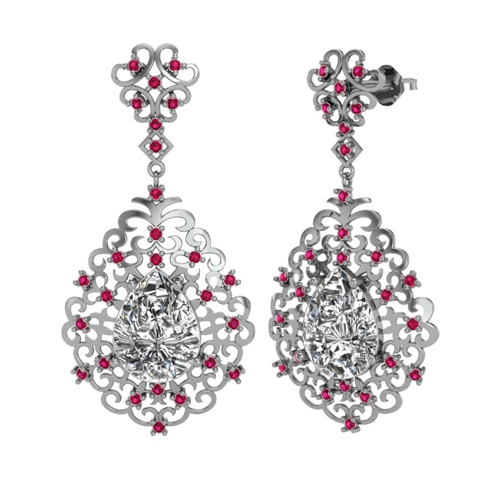 Swarovski ve rodolit garnet 18 ayar beyaz altın küpe